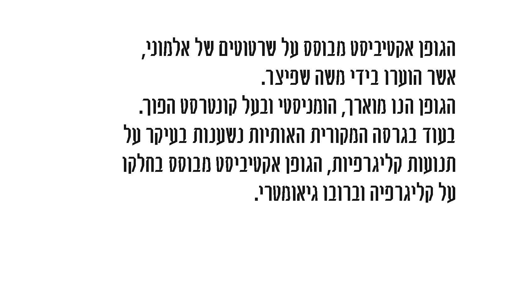 The activist font is based on anonymous sketches edited by Moshe Spitzer.